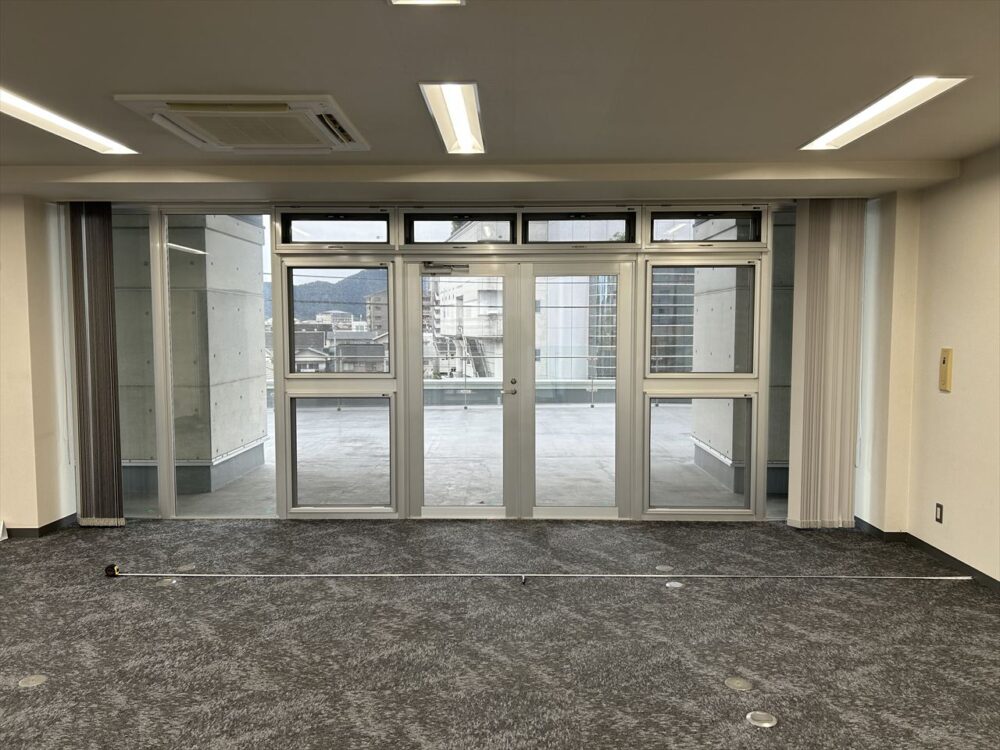 「この開放感を壊さずに、役員室として集中できる場所を作りたい」というのが、お客様の一番のご要望。そこで、空間の魅力を最大限に引き出すガラス間仕切りの設置工事をご提案しました。